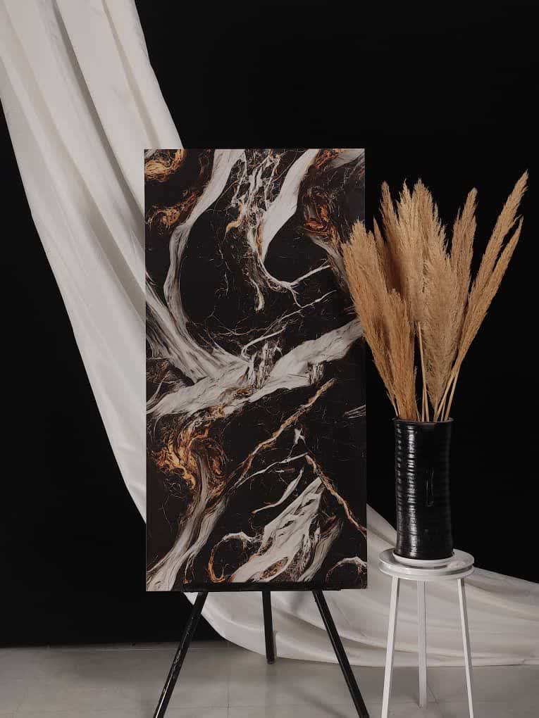 سرامیک مشکی با رگه طلایی سایز 120 * 60 پرسلان